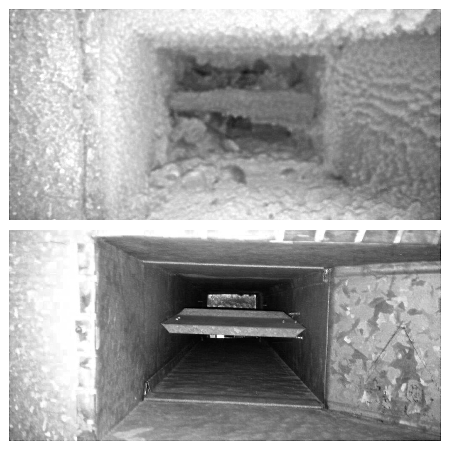 A toilet exhaust system before and after STC technicians removed debris